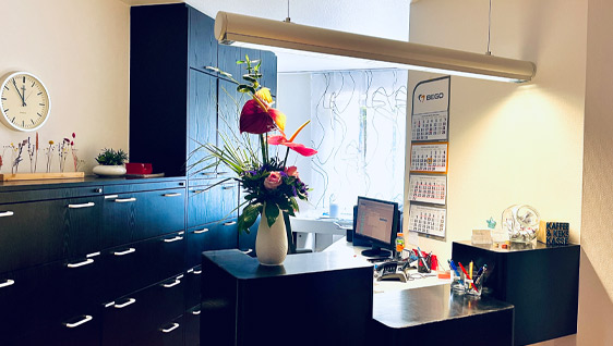 Rezeption / EmpfangUnsere kompetente Zahnmedizinische Fachangestellte ist Ihre erste Anlaufstelle in unserer Praxis. An der Rezeption besticht sie durch ihre Expertise und freundliche Unterstützung.